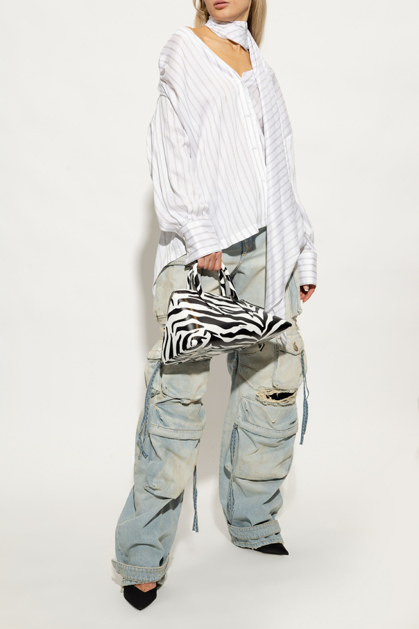 Black ‘Perine’ stiletto pumps from The Attico. Trimmed with leather, this pair features a buckled ankle strap, decorative heel in neon yellow, pointed toe and black leather sole.
