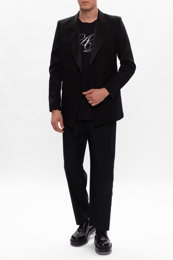 Black crewneck T-shirt from Ann Demeulemeester. Cut from cotton in regular fit, this style showcases white logo print.