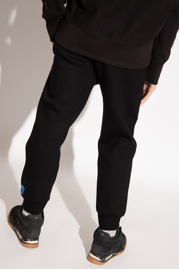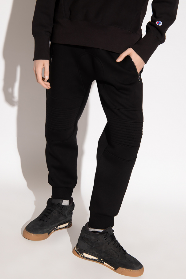 Black trousers from Neil Barrett. Distinguished by stitching details, this pair features a drawstring waist, three zip pockets (one at the back) and elasticated cuffs.