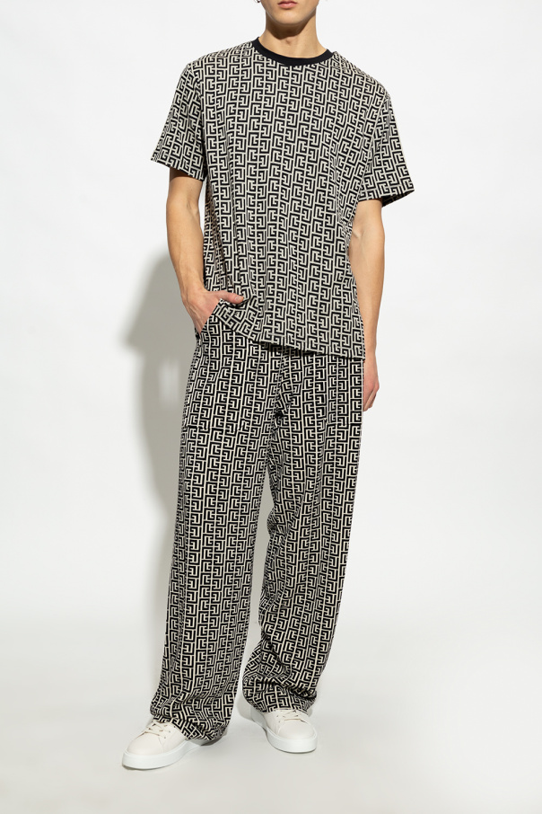 Cream ‘B-Court’ sneakers from Balmain. Made of leather, this lace-up pair features a tongue patch with a logo, embossed monogram at the back and white rubber sole.