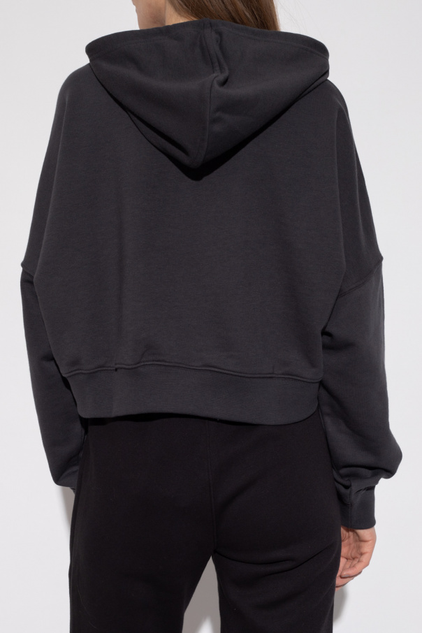 Dark grey hoodie from ADIDAS Originals. Made of cotton from sustainable farms and recycled polyester, this long sleeve design features a logo print with the iconic three stripes, drawstring hood and ribbed trims at the hem and cuffs. ADIDAS partners with the Better Cotton Initiative to improve cotton farming globally.