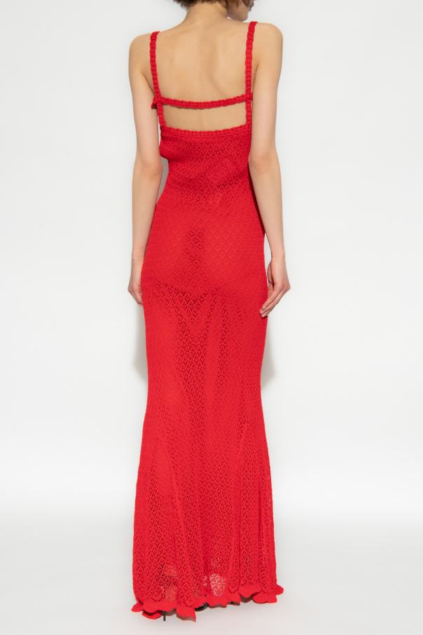 Red slip dress from Blumarine. Cut with a woven design, this style features a maxi silhouette with button closures on the side.