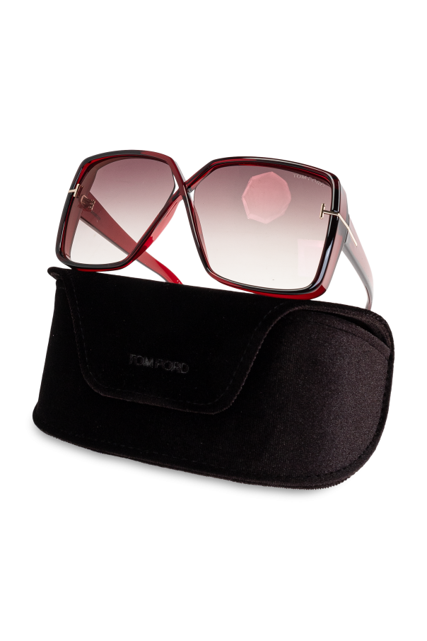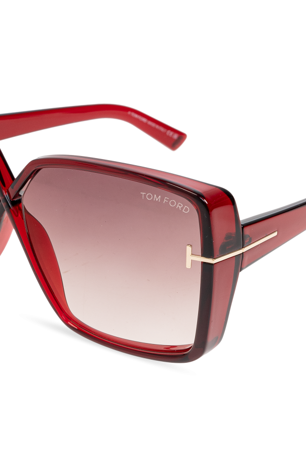 Introducing the exquisite Tom Ford Sunglasses, a paragon of luxury and modern sophistication. These sunglasses boast large, square frames crafted from premium acetate, accentuated with striking metal elements in the form of decorative hinges. The bold red hue of the frames imparts an air of elegance and distinction. The lenses feature a gradient tint, transitioning from darker at the top to lighter at the bottom, ensuring both style and protection against UV and UVB rays. Subtle yet defining touches include the \"TOM FORD\" logo on the lenses and metal \"T\" accents on the hinges, underscoring the brand\'s iconic aesthetic. These sunglasses are accompanied by a black case adorned with the Tom Ford logo, perfect for safekeeping. Why Choose This Product? Designed by the legendary Tom Ford, a fashion icon and former creative director of Saint Laurent and Gucci. Luxurious red frames with unique metal detailing for a distinctive look. Gradient lenses provide superior UV and UVB protection. Comes with an elegant Tom Ford branded case.