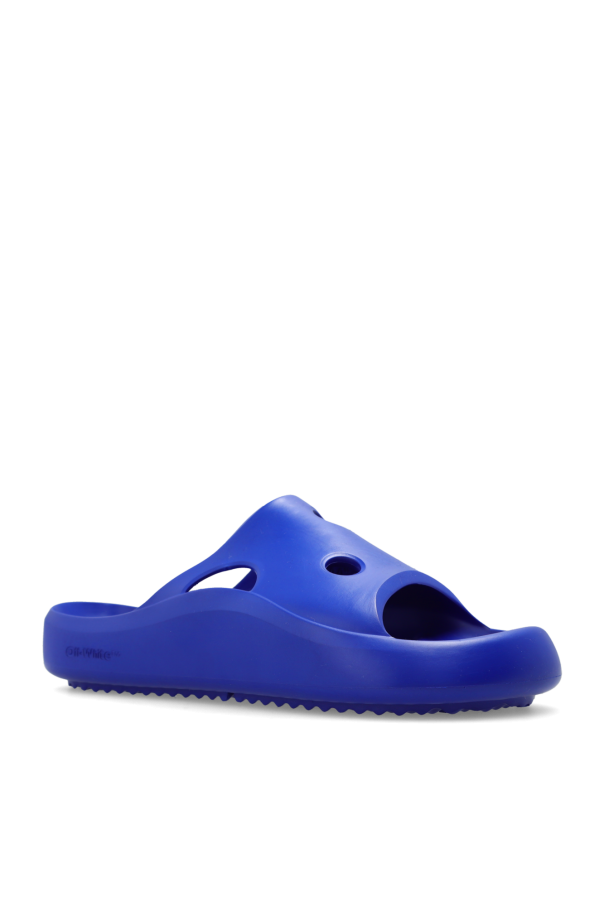 Blue ‘Meteor’ slides from Off-White. Made from EVA foam, this pair features decorative cut-outs and an embossed logo on the side.