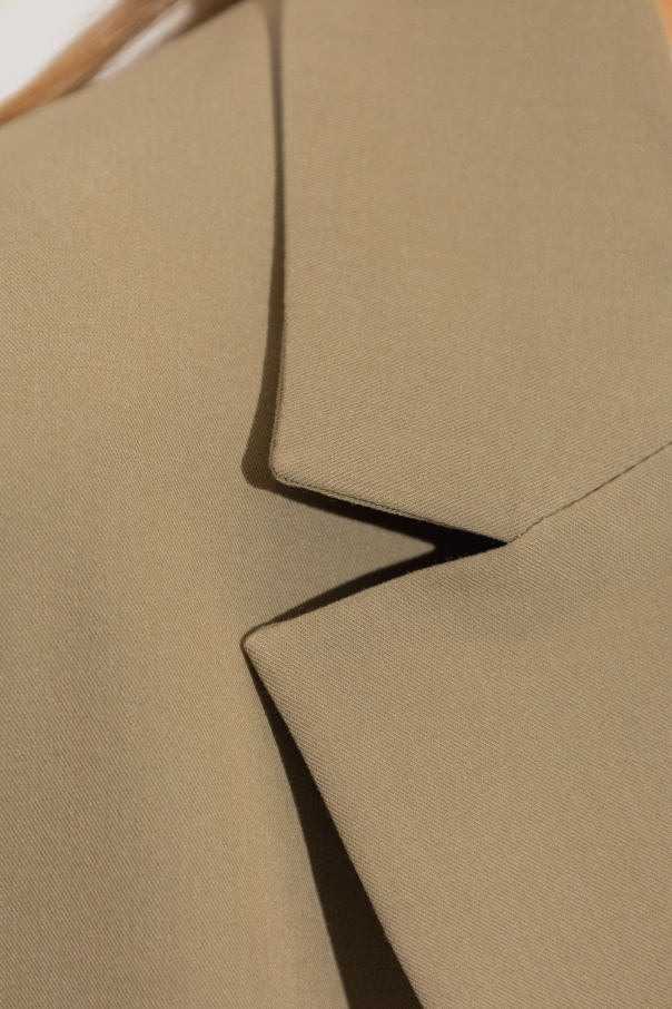 Khaki ‘Ramona’ blazer from Samsoe Samsoe. Fastened with buttons, this style features a double back vent, notch lapels, two flapped pockets and long sleeves with button cuffs.