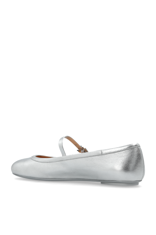Introducing the Carla Ballerinas from the exclusive collection of renowned designer Gianvito Rossi. These exquisite ballet flats boast a classic silhouette with a rounded toe, crafted from smooth, lustrous materials that radiate an opulent silver sheen. The exquisite design is accentuated by a delicate strap across the instep, fastened with an elegant buckle, adding a touch of sophistication. Constructed with an outer layer of premium leather and textile, these ballerinas promise not only elegance but also enduring comfort. The rubber sole ensures a graceful stride, making them the epitome of refined yet practical footwear. Why Choose This Product? Timeless Design: Classic ballerina shape with a modern twist. Luxurious Materials: Crafted from smooth leather and textile for a premium feel. Elegant Details: Features a delicate strap with a chic buckle. Versatile Color: Silver hue adds a touch of glamour to any ensemble.