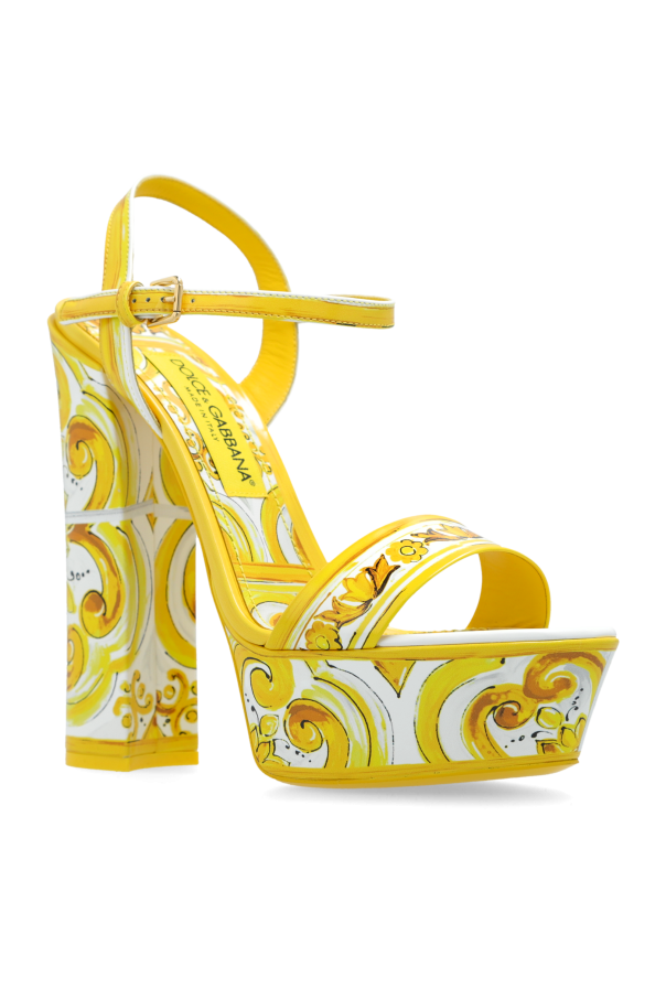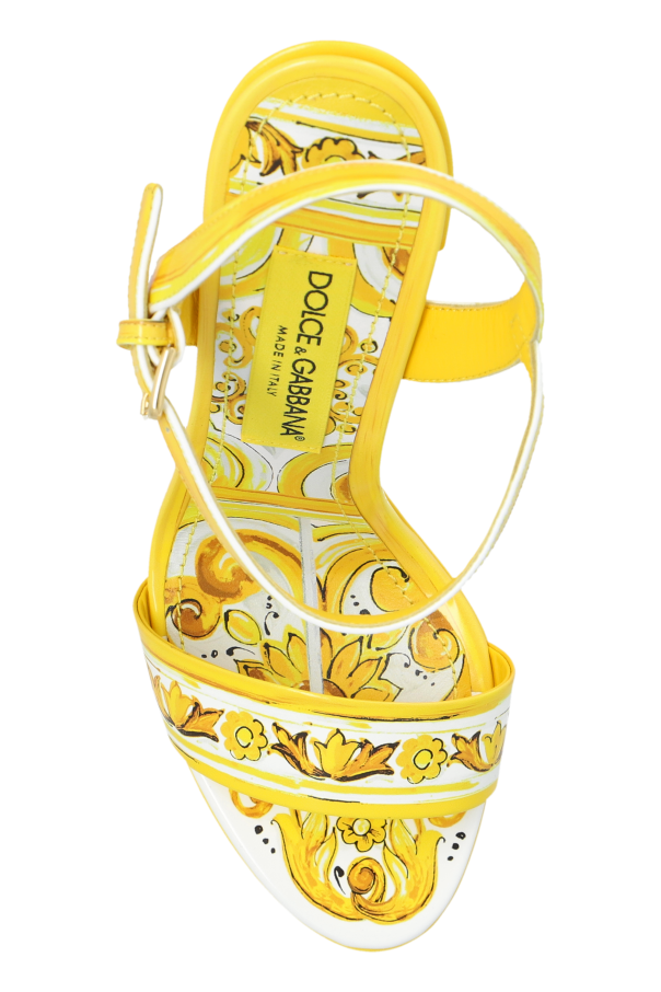 Introducing an exquisite addition to your summer wardrobe: the Dolce & Gabbana Platform Sandals. These sandals are a testament to the unparalleled craftsmanship and aesthetic sensibility of the iconic brand. The vibrant yellow hue, complemented by white elements adorned with intricate, baroque patterns in gold, effortlessly captures the essence of opulence and style. Crafted with a sleek, glossy outer layer that suggests the use of premium leather or high-quality leather-like material, these sandals exude luxury from every angle. The design features a strap across the midfoot and an adjustable ankle strap, ensuring a perfect fit while enhancing the silhouette with an elegant, elongating effect. The substantial height of the heel and platform further accentuates the legs, making these sandals a perfect choice for those seeking both style and stature. The detailed ornamentation, reminiscent of classic ornaments, adds a layer of sophistication, making these sandals not just footwear, but a piece of art. Whether displayed on the feet of a model or paired with your favorite ensemble, these Dolce & Gabbana sandals promise to elevate any look with their distinctive charm and grace. Why Purchase This Product? Exquisite Craftsmanship: Made with high-quality materials, including a 100% leather insole and sole, ensuring durability and comfort. Eye-Catching Design: The striking yellow and white color palette, adorned with gold baroque patterns, makes a bold fashion statement. Versatile Styling: Perfect for various occasions, these sandals can complement both casual and formal outfits. Iconic Branding: Embellished with the Dolce & Gabbana logo, these sandals are a symbol of luxury and exclusivity. Adjustable Fit: Features an adjustable ankle strap for a customized and secure fit.