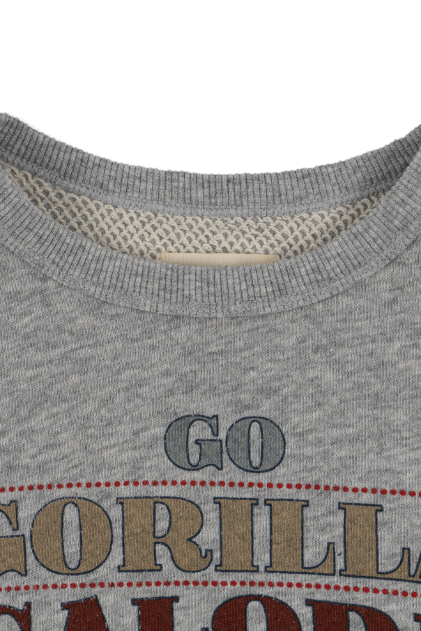 Grey ‘Loupy Lou’ melange sweatshirt from Konges Slojd. Crafted from organic cotton with the GOTS certificate, this design features a multicolored pattern and ribbed trims at the crew neck, hem and cuffs.