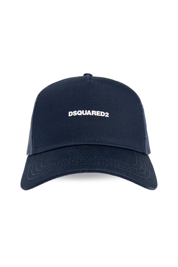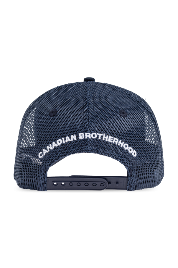 Introducing the DSQUARED2 Cap, a paragon of refined style and functionality from the esteemed fashion house of Dan and Dean Caten. Rendered in a dominant navy blue, this cap epitomizes the harmonious blend of American glamour and Italian sophistication for which DSQUARED2 is renowned. The cap boasts a dual-material design: a solid cotton front adorned with a striking white \"DSQUARED2\" logo, and a breathable mesh back, ensuring comfort and style. The back panel features the inscription \"CANADIAN BROTHERHOOD,\" adding a touch of exclusivity. An adjustable closure allows for a personalized fit, catering to the discerning gentleman. Why Choose This Product? Exquisitely crafted by renowned designers Dan and Dean Caten. Combines luxury with practicality through its unique material blend. Features a distinctive logo and inscription, symbolizing elite brand prestige. Adjustable fit for enhanced comfort and versatility.