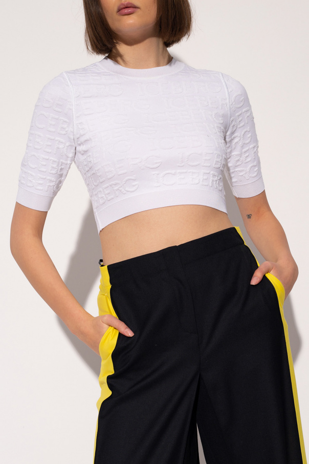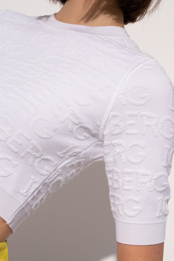 White top from Iceberg. This garment is enriched by an embossed logo pattern and ribbed trims at the neck, hem and cuffs.