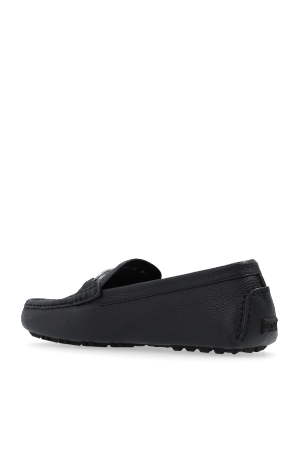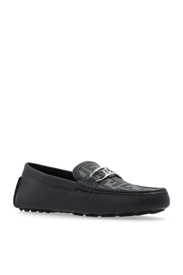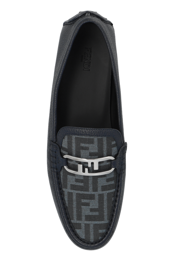Introducing the ‘Olock’ Leather Moccasins by Fendi, a quintessence of luxurious footwear. Crafted with precision, these navy-blue moccasins exude a natural sheen and a textured finish that only high-quality leather can provide. The classic, elegant silhouette is accentuated by a low, flat heel, cleverly hidden to elevate the shoe\'s high-heel category grace. A distinguishing feature of these moccasins is the metal buckle atop, which not only adds a touch of elegance but also serves as a hallmark of the brand\'s exquisite craftsmanship. The thick, rubber sole ensures durability and flexibility, promising unparalleled comfort with every step. The interior, lined with material bearing the designer\'s logo, speaks volumes of the meticulous attention to detail and the prestige associated with Fendi\'s creations. Why Purchase This Product? Exclusive Design: The metal buckle serves as a stylish, recognizable emblem of the Fendi brand. Premium Materials: Crafted from superior leather with a rubber sole for lasting wear. Comfort & Durability: The thick, flexible sole coupled with a luxurious interior ensures comfort without compromising on durability. Elegant Silhouette: The timeless design of the moccasins offers versatility and elegance, suitable for any occasion.