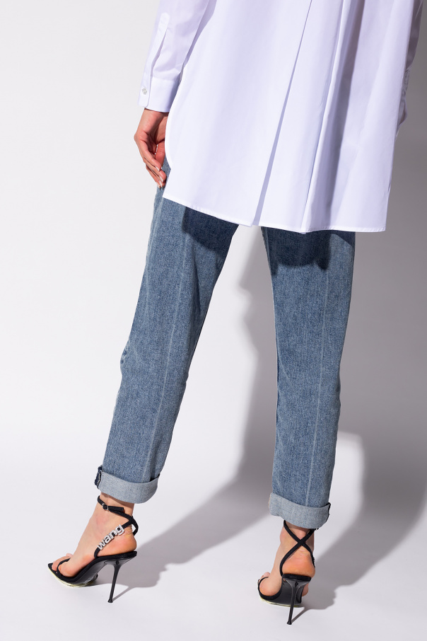 Blue ‘Rosa’ boyfriend jeans from Rag & Bone. Falling to three-quarter long legs with turn-up hems, this pair features a hidden button fastening and classic five pockets.