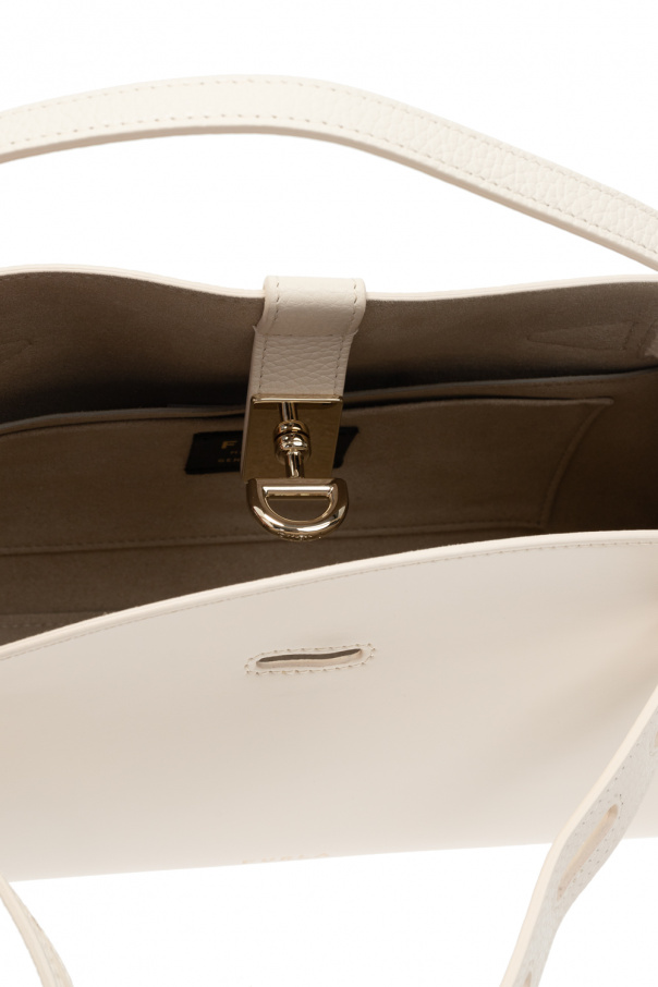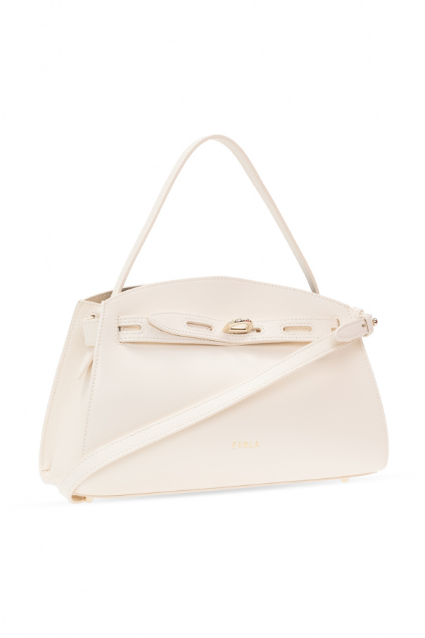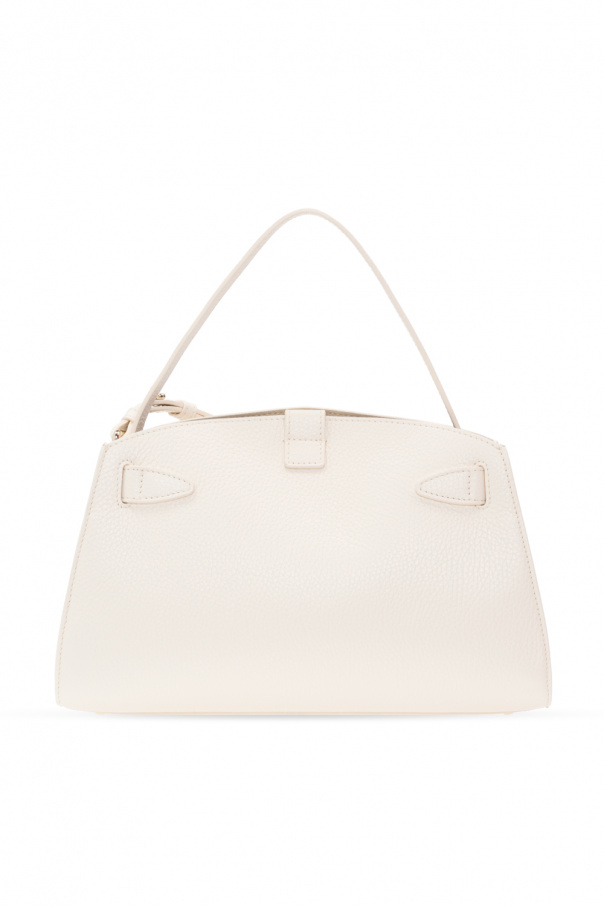 Cream ‘Margherita’ shoulder bag from Furla. Crafted from leather, this design features a closure embossed with a pattern, gold-tone logo detail, half-round handle, adjustable shoulder strap and one internal compartment with two slip pockets.