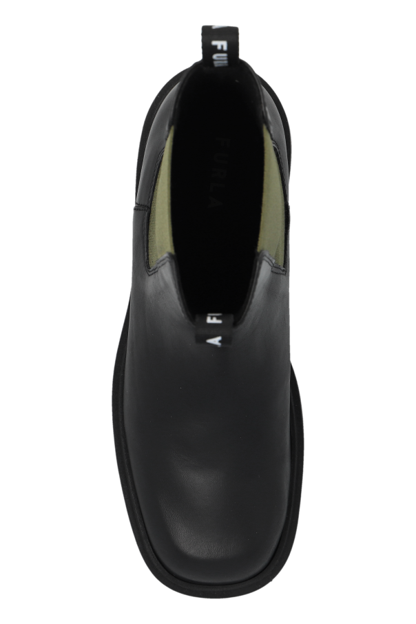 Introducing the exquisite ‘College’ Heeled Chelsea Boots by the illustrious Italian brand, Furla. These boots epitomize the perfect blend of classic sophistication and contemporary flair, making them a quintessential addition to any discerning wardrobe. Crafted from premium natural leather, the boots feature a smooth, lustrous finish that exudes opulence. The classic Chelsea boot design is accentuated by robust, elastic side inserts in a striking green hue, ensuring both style and comfort. The rounded toe and substantial, defined heel add a distinctive character to these timeless boots. Adorned with the iconic Furla logo on the back pull tabs, these boots effortlessly merge functionality with elegance. The discreet detailing on the elastic inserts further enhances their refined aesthetic. The dominant black color, contrasted with green elastic panels, offers versatility, allowing these boots to seamlessly complement both elegant and casual ensembles. As showcased in the photos, pairing them with a long coat and dress creates a sophisticated look, perfect for various occasions. Why Choose These Boots? High-quality natural leather construction Comfortable and stylish green elastic side inserts Distinctive Furla branding Versatile design suitable for both elegant and casual outfits Elegant and robust heel for added style and support