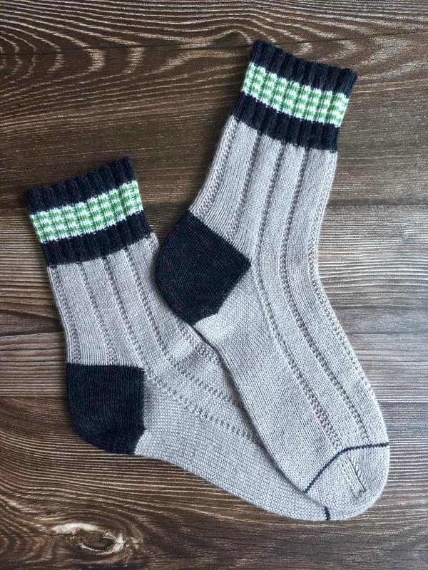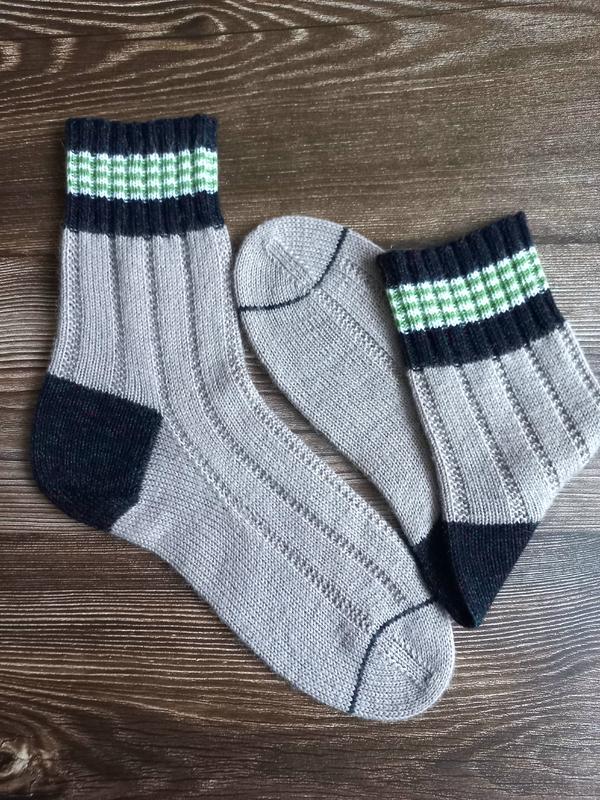 Чоловічі в'язані шкарпетки виготовлені руками майстрині з якісної вовняної нитки. Шкарпетки можна одягати у взуття.