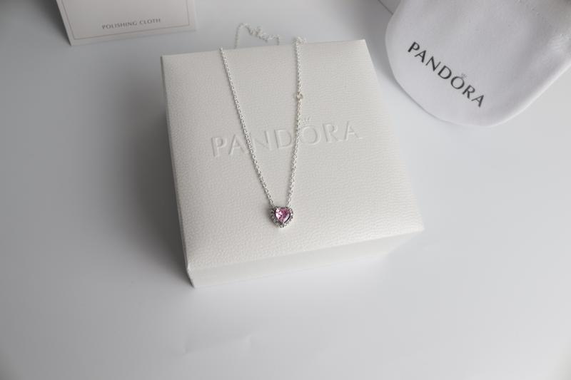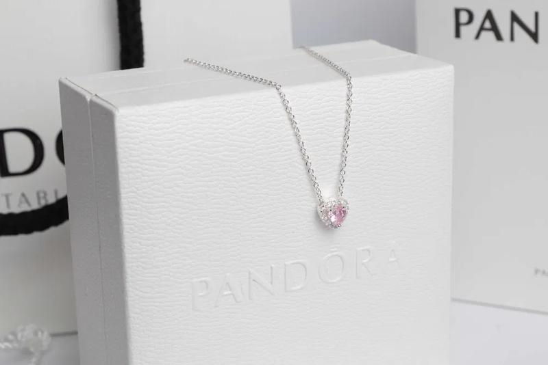 Наамисто-кольє Pandora з підвіскою "Блискуче серце з рожевим ореолом".Це намисто-кольє має форму ланцюжка зі срібла 925-ї проби, який можна регулювати по довжині залежно від розміру декольте.