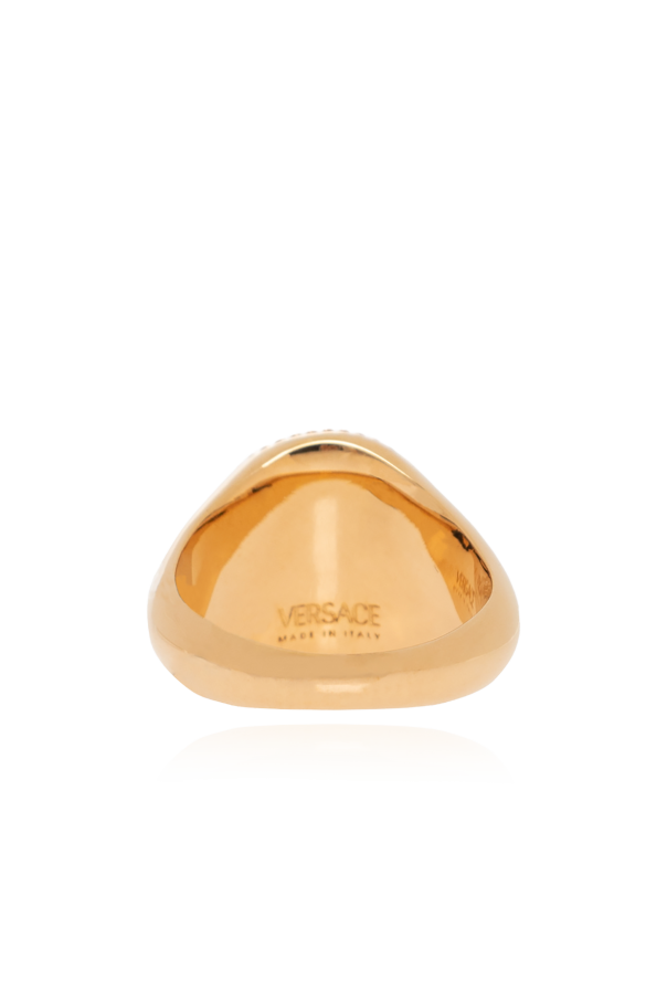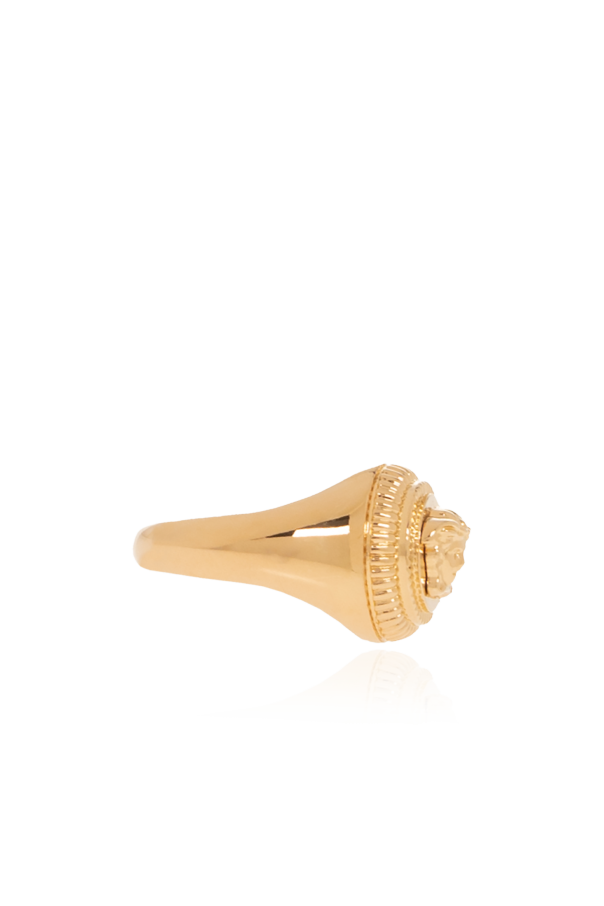 Gold-tone ring from Versace. Made of brass, this item is decorated with the iconic Medusa head motif.