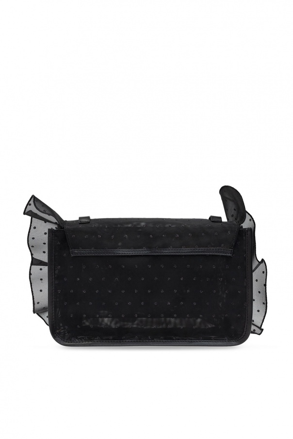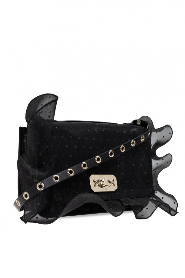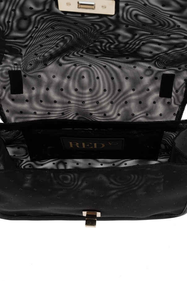 Black transparent shoulder bag from Red Valentino. Finished with black glitter, this design secures with a decorative fastener with an embossed logo and features a detachable and adjustable shoulder strap, gold-tone metal hardware and one internal compartment with a slip pocket.