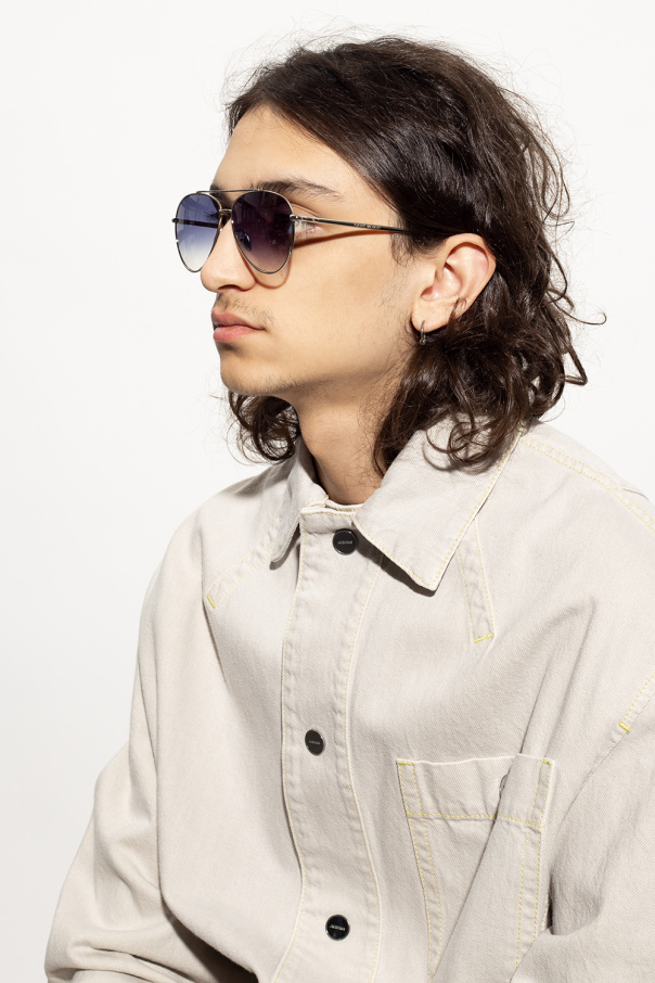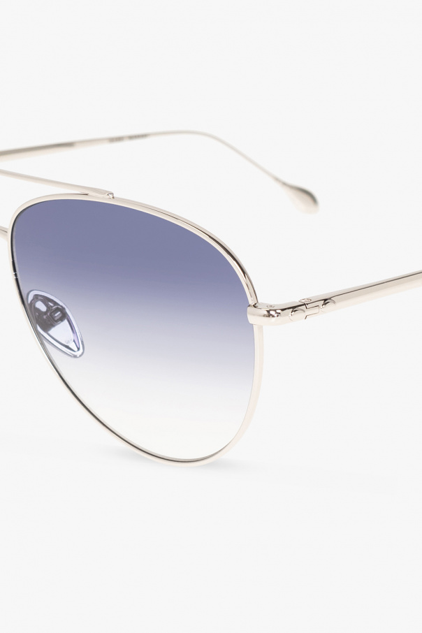 Silver-tone sunglasses from Isabel Marant. This aviator pair features an engraved logo as well as navy and grey gradient lenses with 100% UV protection. Comes with a case.