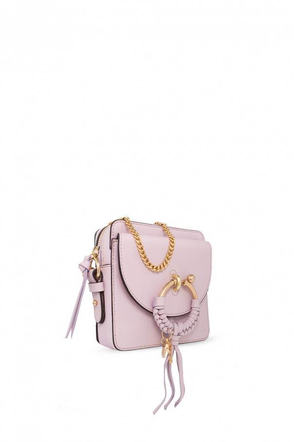 Light purple ‘Joan’ shoulder bag from See By Chloé. Made of leather, this model features a zip fastening, front pocket with a snap closure and a round element enriched by woven details, tassels and a logo charm, shoulder chain, gold-tone metal hardware and one internal compartment with one card slot.
