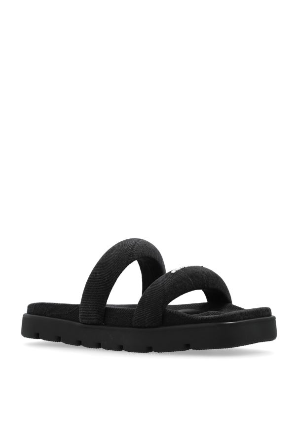 Experience the epitome of luxury with our exclusive collection of slides designed by the renowned Alexander Wang. The Klapki \'Ja\' merges elegance and comfort, making it a versatile choice for both everyday wear and formal occasions. Featuring a classic, rectangular sole shape with two wide straps, these slides provide excellent foot stability. The thick, robust sole adds a modern, substantial look to the design. Crafted from a textured material, likely fabric or leather, the straps and sole boast a uniform pattern that underscores a minimalist and sophisticated aesthetic. The deep black color ensures versatility, easily complementing various outfits. A standout feature is the \"alexanderwang\" inscription in contrasting white on one of the straps, offering a clear and stylish brand identification. The anti-slip sole and the soft, cushioned interior further enhance comfort and stability during wear. Why Buy This Product? Elegant and Comfortable: Perfect for daily wear and formal events. Brand Recognition: Clear Alexander Wang branding for a touch of luxury. Superior Stability: Thick, anti-slip sole ensures secure footing. Minimalist Design: Textured, uniform pattern in a versatile deep black color. Soft Interior: Cushioned material for enhanced comfort.