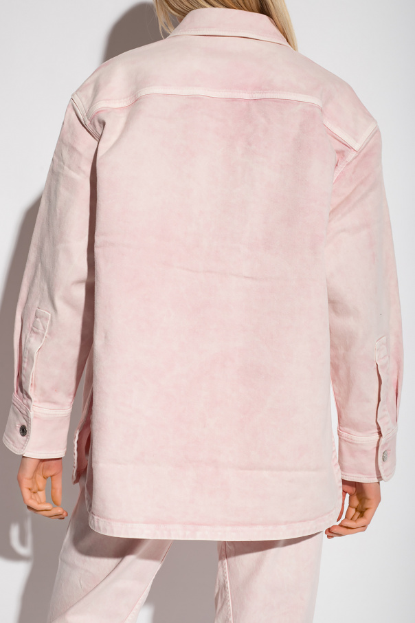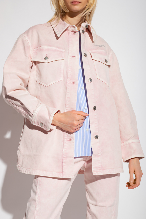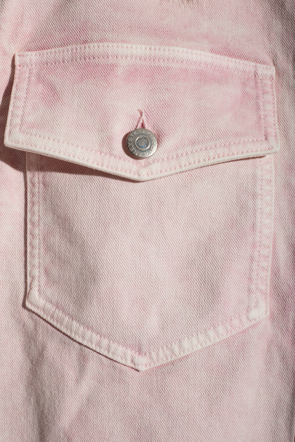 Light pink denim jacket from Stella McCartney. Embroidered with the brand's logo in silver-tone lurex yarn, this style features a vintage treatment, button fastenings, two flapped button pockets on the front, side slits and long sleeves with button cuffs.