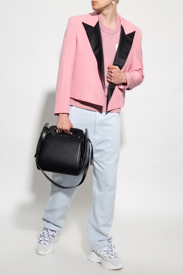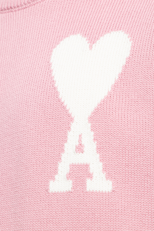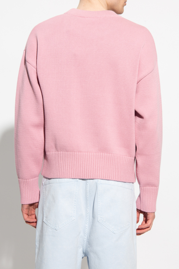 Pink sweater from Ami Alexandre Mattiussi. Crafted from wool and organic cotton with the GOTS certificate, this garment features a white Ami de Coeur embroidery and ribbed trims at the round neck, hem and cuffs.