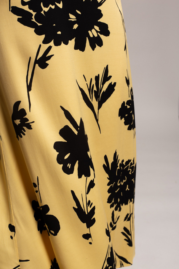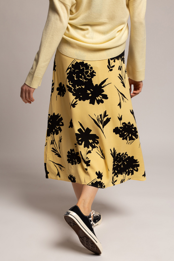 Yellow and black skirt from Samsoe Samsoe. This style was crafted with ECOVERO™, which is a certified, environmentally friendly viscose-based alternative to regular viscose. It features a zip and a hook & eye closure, an elasticated waistband and a floral pattern.