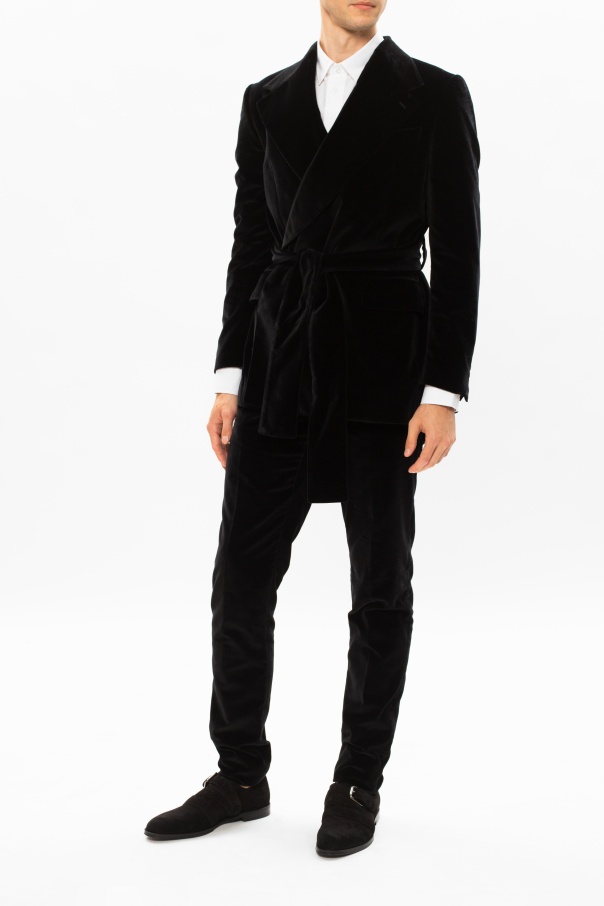 Black ‘Giotto’ monk strap shoes from Dolce & Gabbana. Crafted from suede, this pair is set on a maroon and black leather sole and has buckle strap at the vamp.