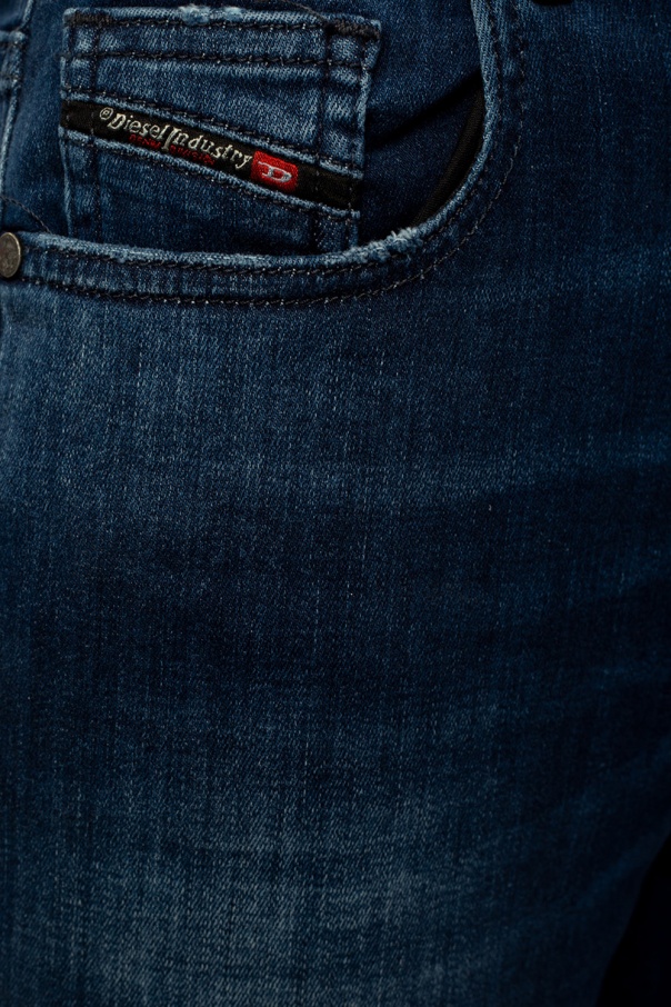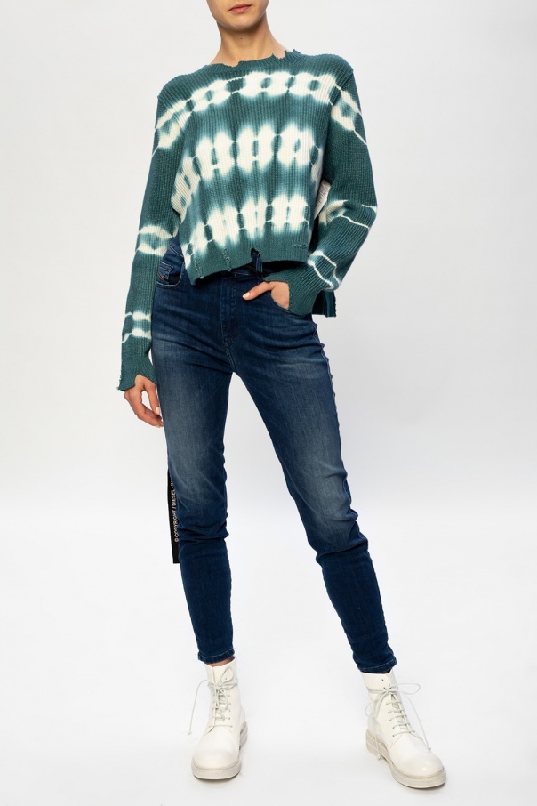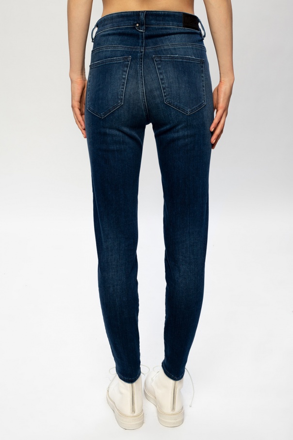 Blue ‘Slandy-High’ jeans from Diesel. Cut from stretch cotton with a high rise, this skinny pair features zip fly with button fastening and five pockets throughout.