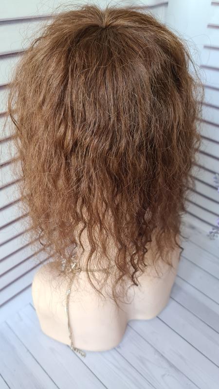Накладка из натуральных человеческих волос вьющейся от природы волос без имитации кожи головы.Волос природной мелкой волны пористый пушится если расчесать.Можно делать укладку эффекта мокрых волос.Волос украинской девушки,накладка ручной работы. Накладки из натуральных волос используются для людей с малым количеством волос.