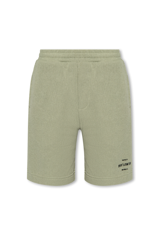 Green shorts from Helmut Lang. Made from a cotton blend, this pair features a tactile logo in black, two front pockets and two back pockets.