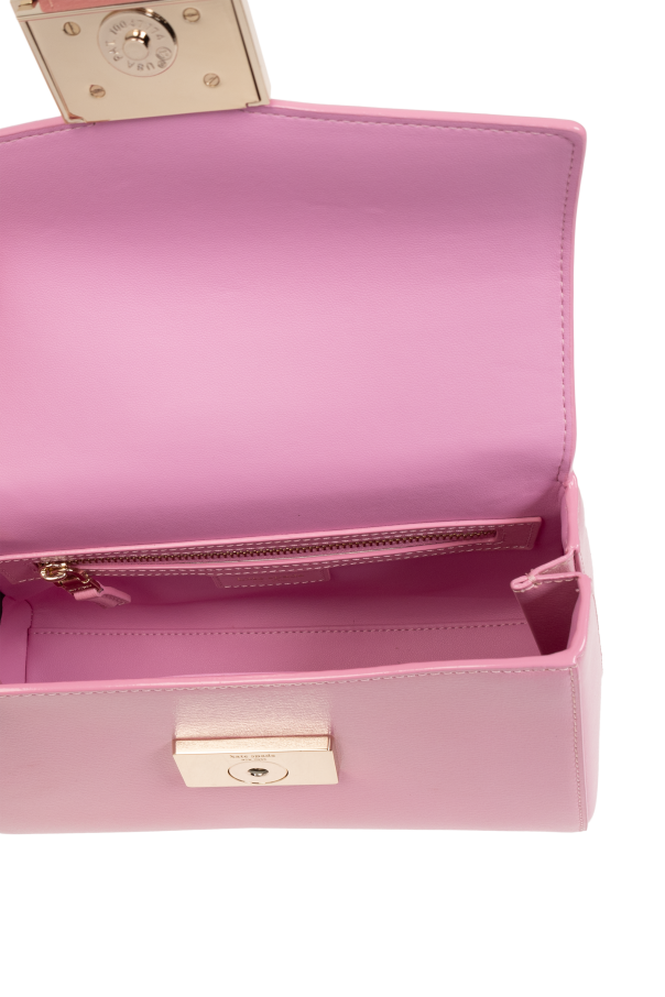 Introducing the \'Katy\' shoulder bag, a quintessential piece from the luxurious collection of Kate Spade, designed to enchant the modern woman with its understated elegance and functionality. Crafted from 100% fine leather with a matte finish, this bag is presented in a delicate pink hue that exudes sophistication. Its rectangular silhouette with softly rounded edges and a polished gold metal clasp closure, complemented by a designer logo plaque in gold with a contrasting black inscription, encapsulates contemporary chic. The \'Katy\' bag is as practical as it is stylish, featuring a versatile, adjustable shoulder strap alongside a sleek, short handle for multiple carrying options. The interior, lined with the same exquisite pink fabric, includes a secure zippered pocket, ensuring functionality meets elegance. The absence of excessive embellishments or patterns highlights the bag\'s minimalist charm, making it a timeless accessory for any occasion. Why Purchase This Product? Exclusively crafted from 100% leather, offering durability and a luxurious feel. Adorned with a gold-tone metal clasp and logo plaque, adding a touch of elegance. Features an adjustable and detachable shoulder strap, providing versatile carrying options. Equipped with an interior zippered pocket for secure storage of personal items. Ideal for those who appreciate minimalist luxury with an eye for functionality.