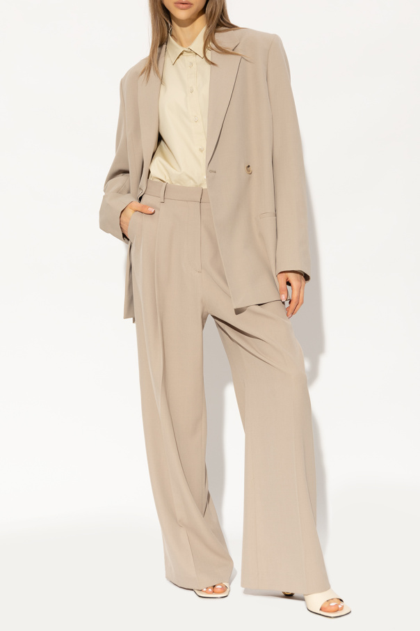 Cream mules from JW Anderson. Made of leather, this model features a square toe, a black leather sole and a decorative chain link heel in gold-tone.