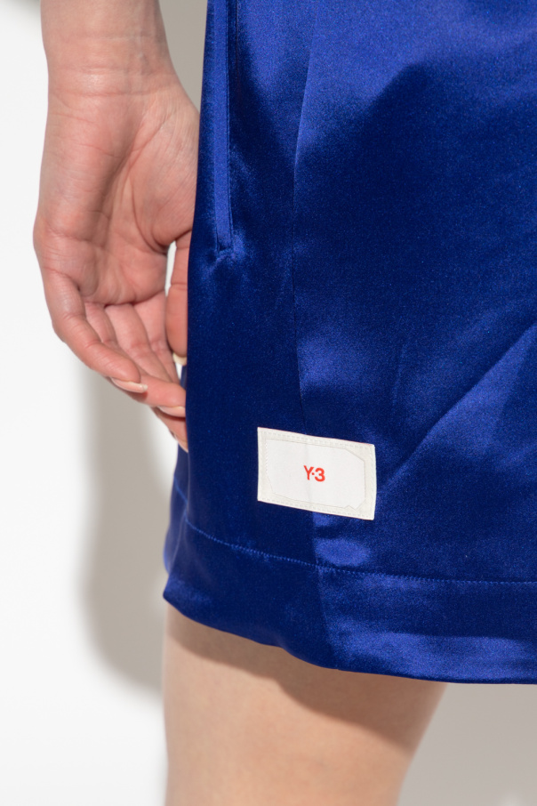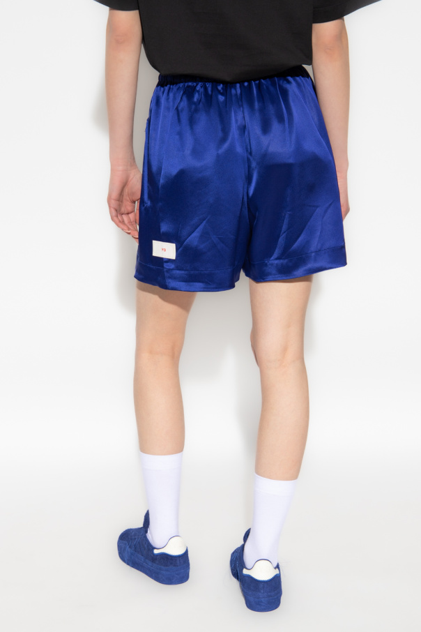 Dark blue from Y-3 Yohji Yamamoto. Rendered in satin fabric, this pair features a drawstring waist, two front zip pockets and a side logo patch.