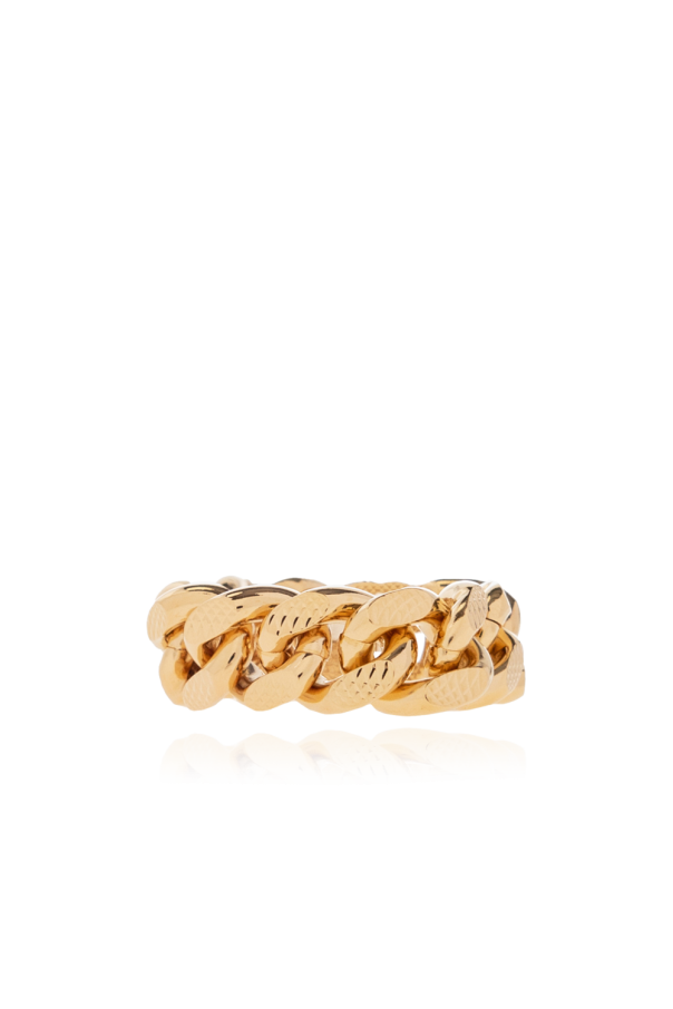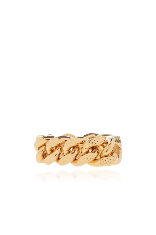 Gold-tone chain ring from Gucci. Crafted from textured brass this item is intertwined with a logo-shaped link.