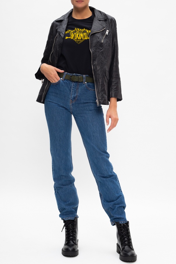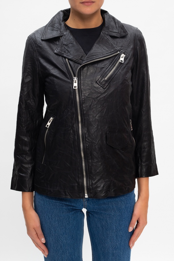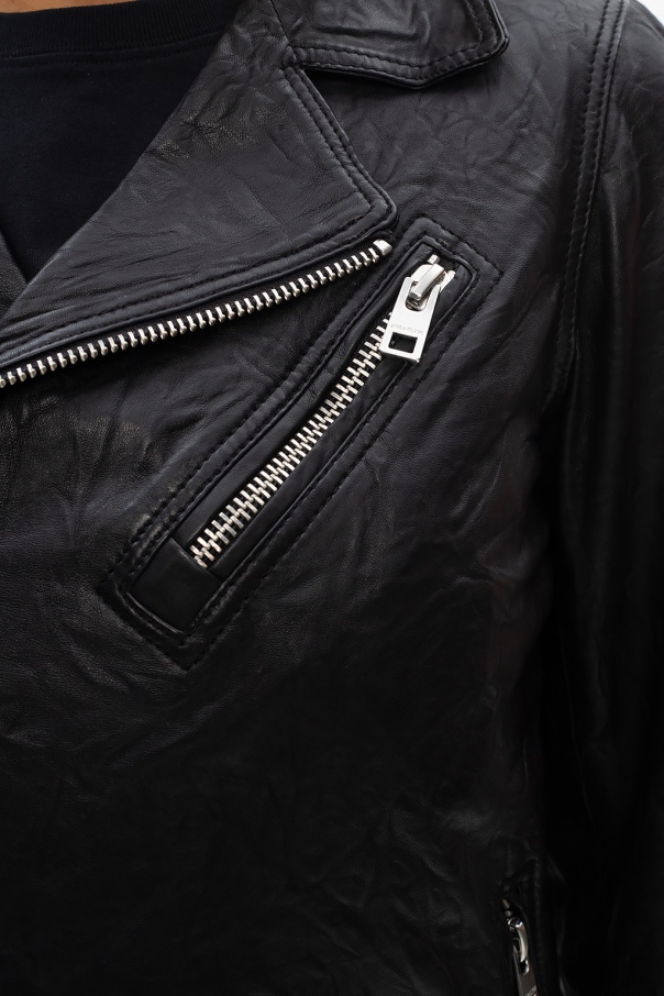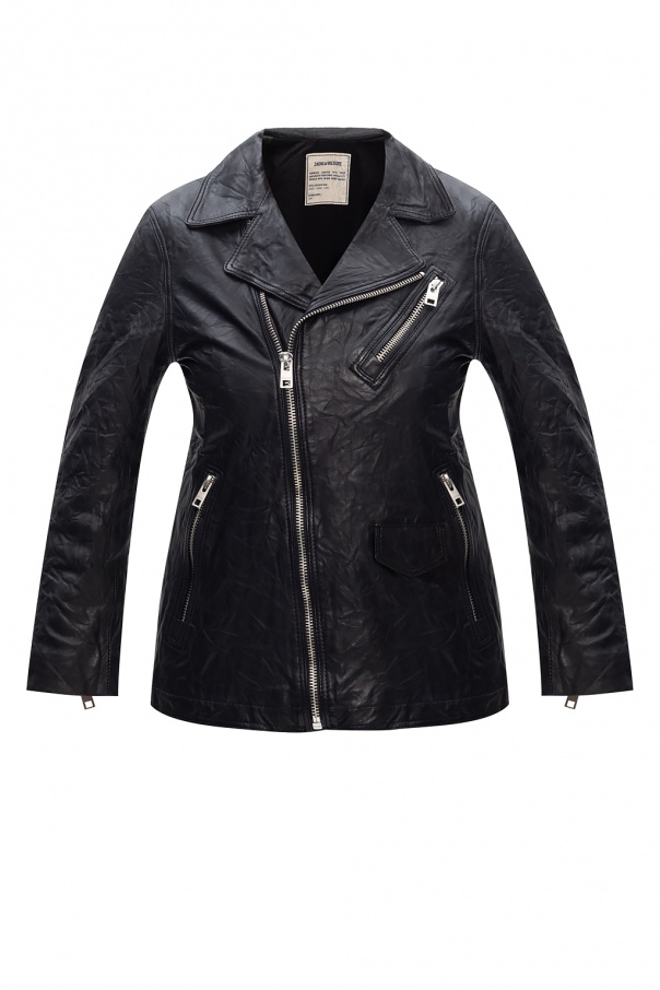 Black biker jacket from Zadig & Voltaire. Crafted from lamb leather with a crinkle effect, this design features zip fastening, four zip pockets, snap-fastened flap pocket and long sleeves with zip details.