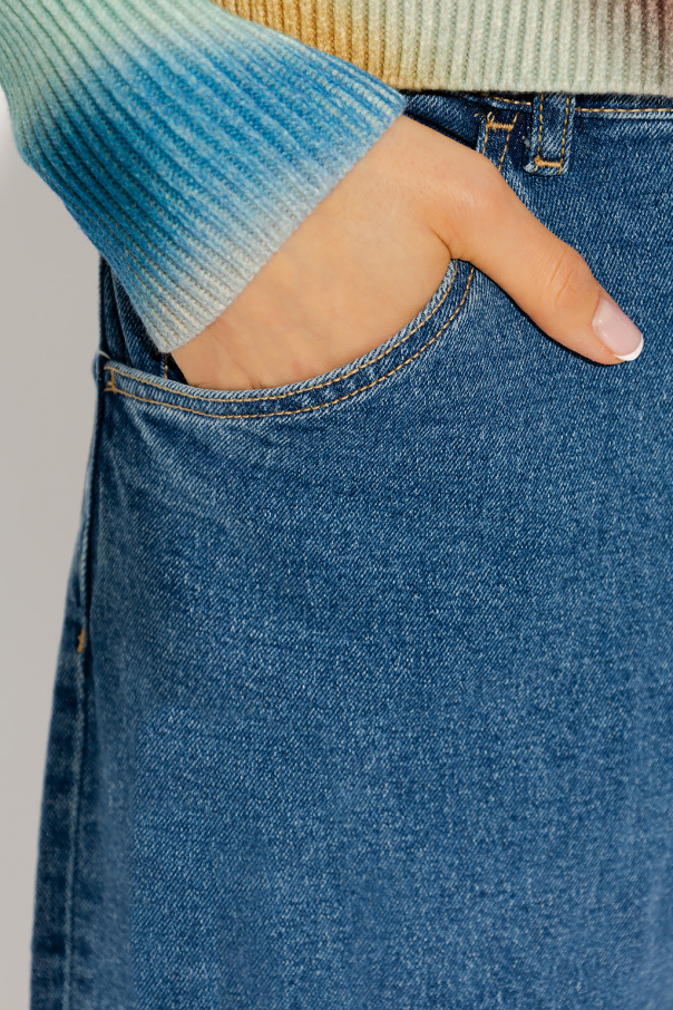 Blue jeans from PS Paul Smith. Fastened with a zip and button, this pair features a logo patch at the back, three front pockets, two back pockets and cropped legs with adjustable straps.