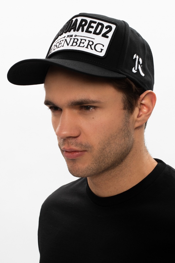 Black baseball cap from Dsquared2 x Rosenberg x VITKAC – three brands in one. Designed exclusively for the ‘Dsquared2 for Rosenberg’ limited collection, this cotton-crafted item was emblazoned with a patch and black and white embroidery with logo and outfitted with an adjustable strap on the back.