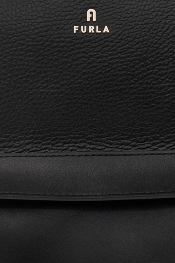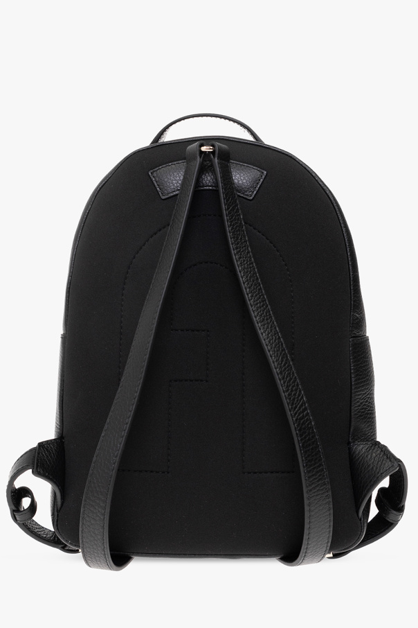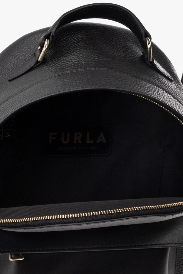 Black ‘Favola Small’ backpack from Furla. Crafted from leather, this design secures with a zipper and features a zip pocket accompanied at front with a metal logo plaque, a half-round handle, adjustable shoulder straps, gold-tone metal hardware and one internal compartment with a zip pocket.