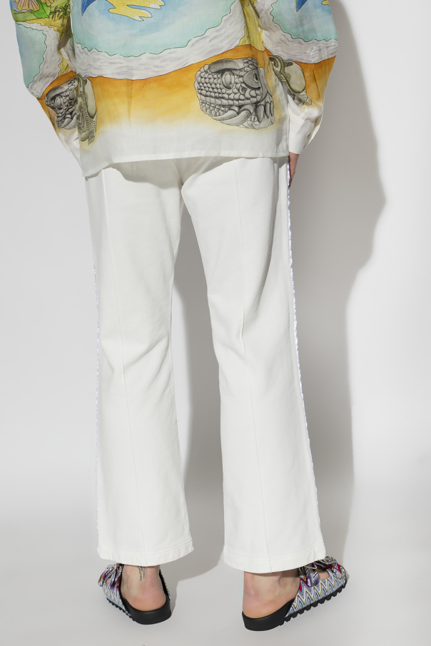 White sweatpants from Casablanca. Crafted from organic cotton, this pair features an elastic drawstring waistband, three slip pockets, satin side stripes, embroidered pattern and decorative trimming.