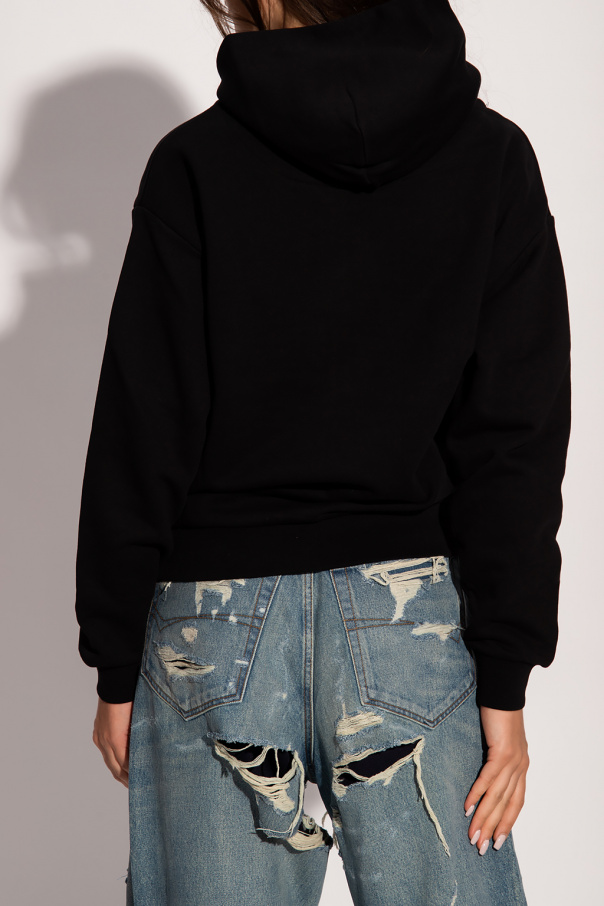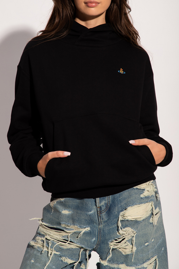Black hoodie from Vivienne Westwood. Made of organic cotton, this long sleeve design is complete with a multicolored logo patch, two slip pockets and ribbed trims at the hem and cuffs.