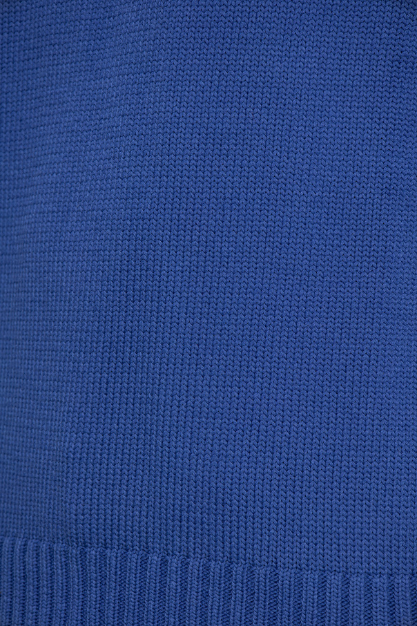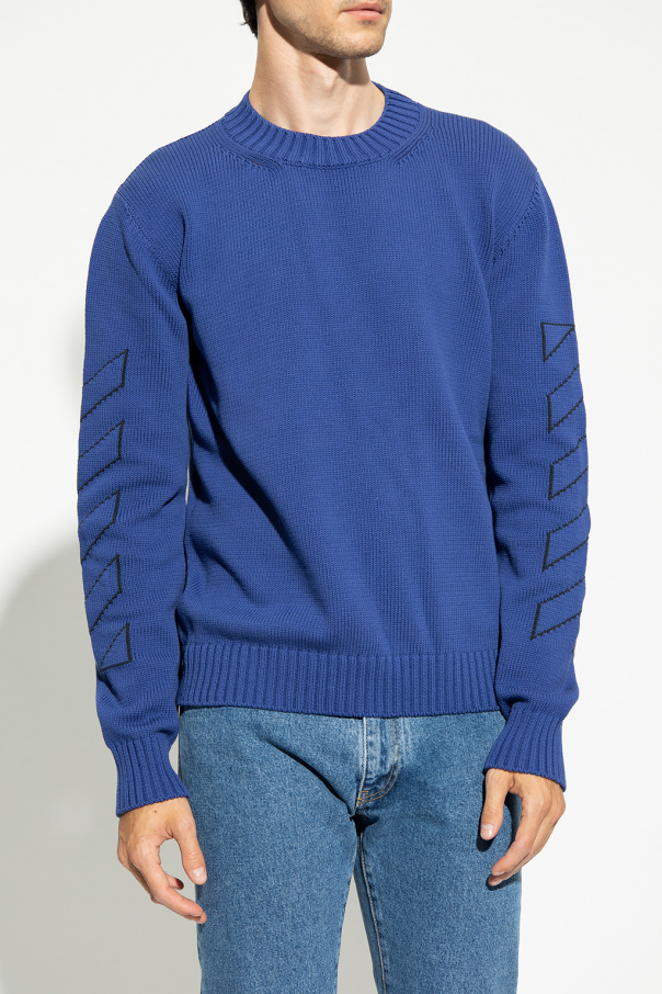 Blue sweater from Off-White. Crafted from cotton, this garment is enriched by the label’s signature arrow motif, diagonal stripes in black and ribbed trims at the crew neck, hem and cuffs.