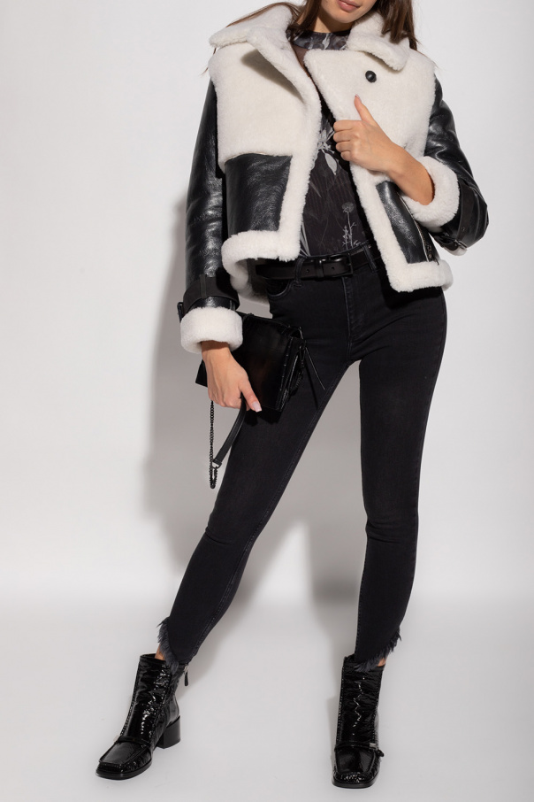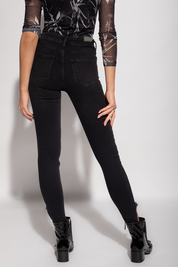 Black ‘Dax’ jeans from AllSaints. Cut with a skinny fit, this pair features a zip fly with a button, classic five pockets and raw hems.