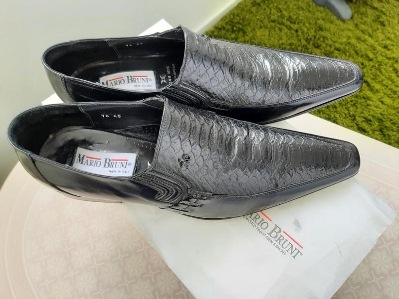 Стильные и нарядные кожаные туфли от Mario Bruni на кожаной подошве (поставлена "профилактика"), украсят стильного мужчину с 45 размером обуви. Верх туфель-"под крокодила", 100% кожа как верх, так внутренняя часть туфель. Новые (одевались только в квартире для примерки, но оказались не по размеру). Отправлю только после предоплаты на карту.