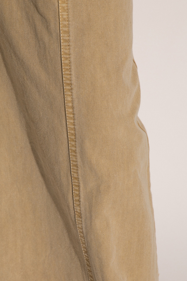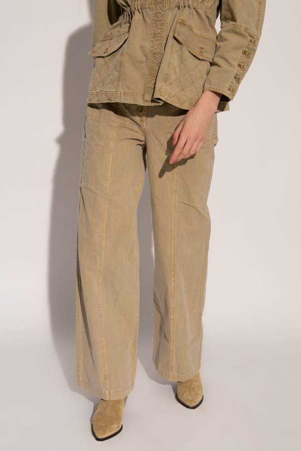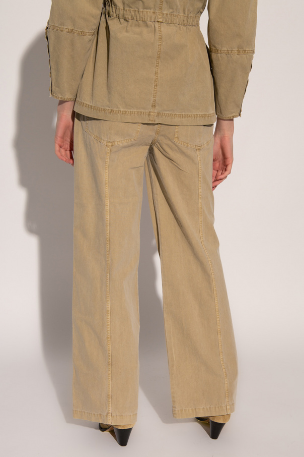 Beige trousers \'Abrams\' from Ulla Johnson. Made of cotton. Fastened with buttons. Four slip pockets. Belt with buckle included. Wide legs, flared downwards.