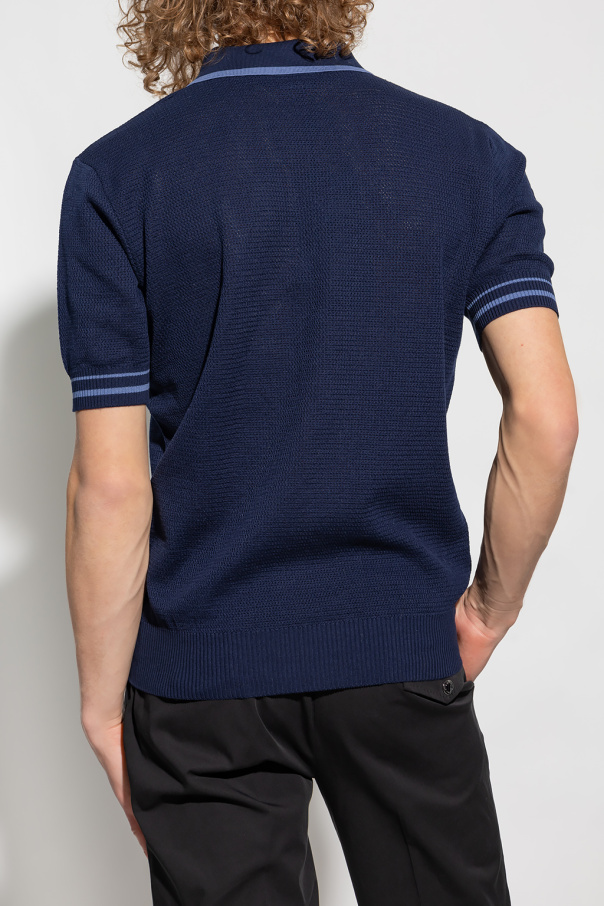 Navy blue and blue polo shirt from Dolce & Gabbana. Made of cotton, this style features a pointed collar, short sleeves and logo embroidery on the front.