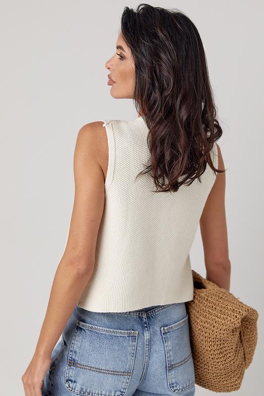 Эта модель идет с круглой горловиной и прямым низом. Спереди жилет имеет завязки. Изделие пошито из качественной вискозной вязки, которая очень приятная к телу. Благодаря этому, такую жилетку можно носить самостоятельно или дополнять ею многослойные образы.