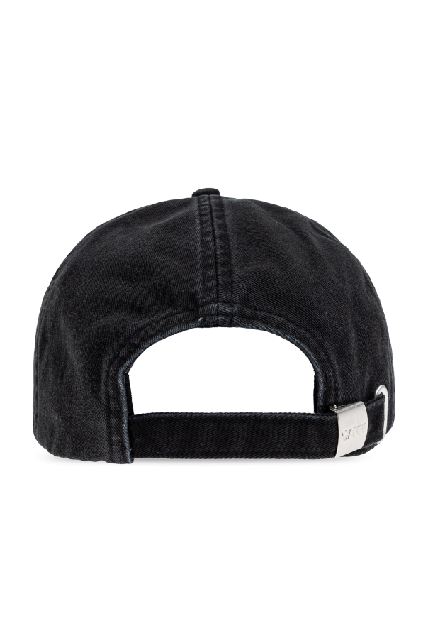 Introducing the Ganni Black Cap, a quintessential accessory that marries classic design with minimalist elegance. This cap, crafted from 100% organic cotton, showcases a solid yet refined construction, ideal for the discerning fashion aficionado. Adorned with a prominent white embroidered GANNI logo, this piece exudes sophistication and brand prestige. The adjustable metal buckle at the back ensures a bespoke fit, making it not just a stylish choice, but a practical one. GANNI, a celebrated Danish brand led by Nicolaj and Ditte Reffstrup, redefines Scandinavian fashion with a blend of timeless aesthetics and a carefree spirit. This cap is a testament to their ethos, embodying both simplicity and statement. Why Purchase This Product? Expertly crafted from organic cotton for a sustainable choice. Embellished with a striking GANNI logo, a mark of luxury. Features an adjustable metal buckle for a perfect fit. Embodies the minimalist yet bold spirit of GANNI.