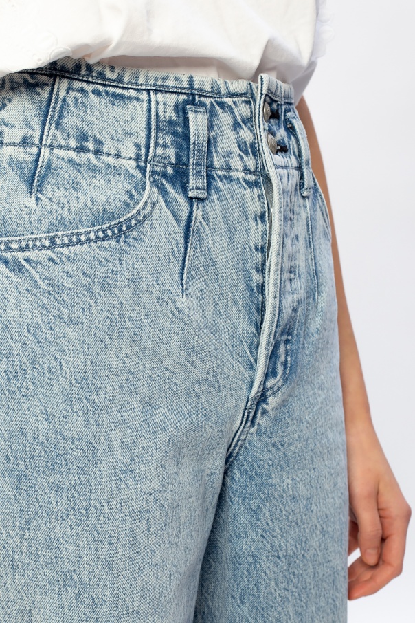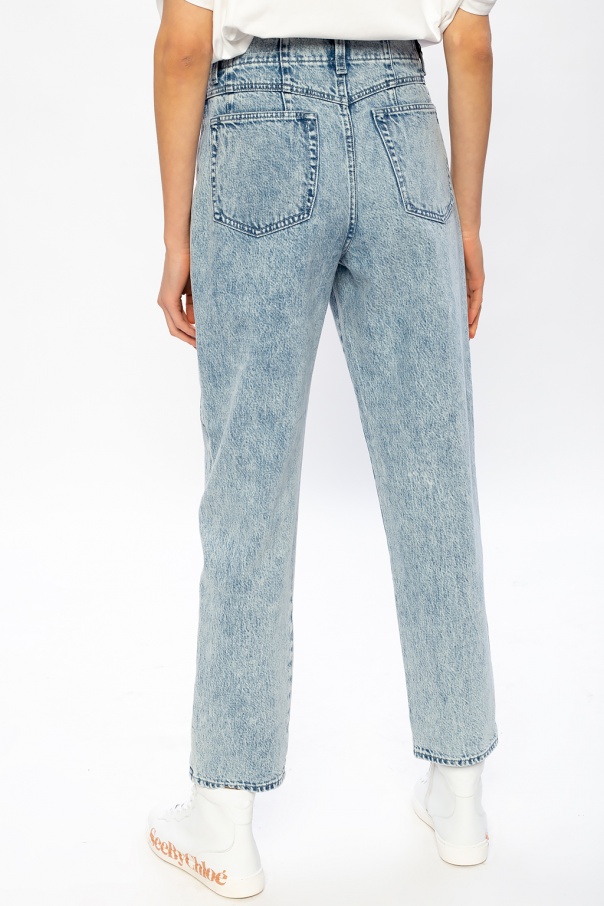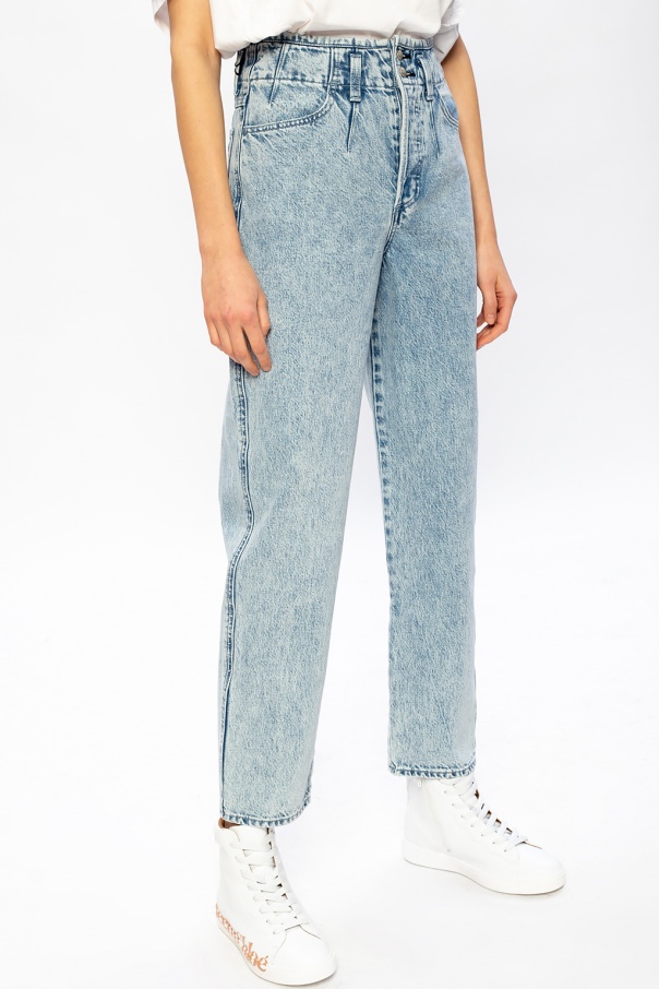 Light blue ‘Venus’ trousers with a stone-washed effect from Rag & Bone. Fastened with buttons, this tapered leg design features button fastening, a black logo embroidery, two front pockets and two back pockets.